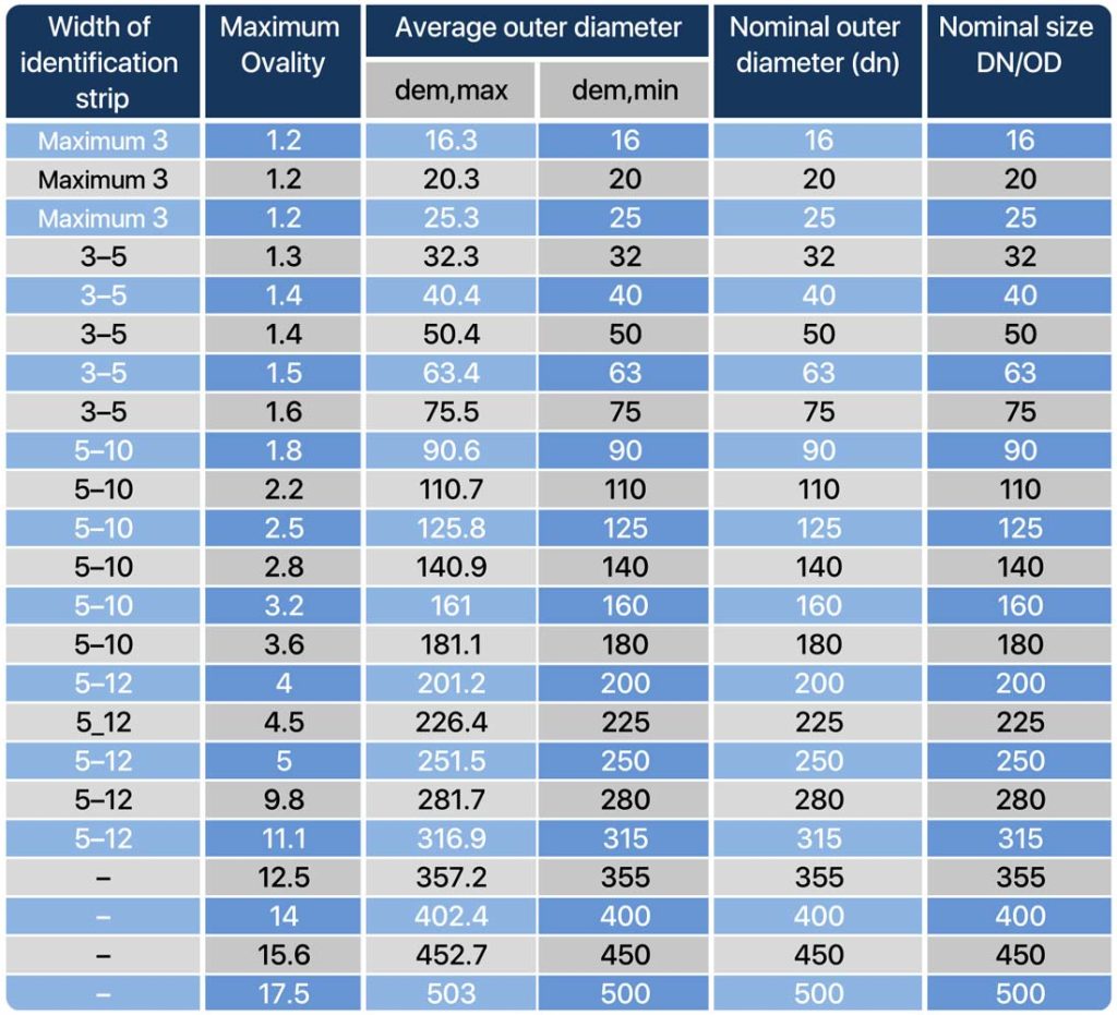 Wallthickness & Mass table according to DIN 8074 & INSO 7607